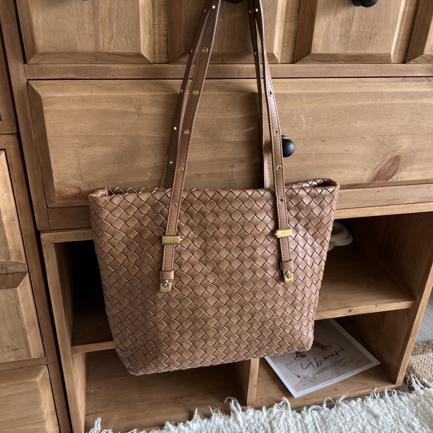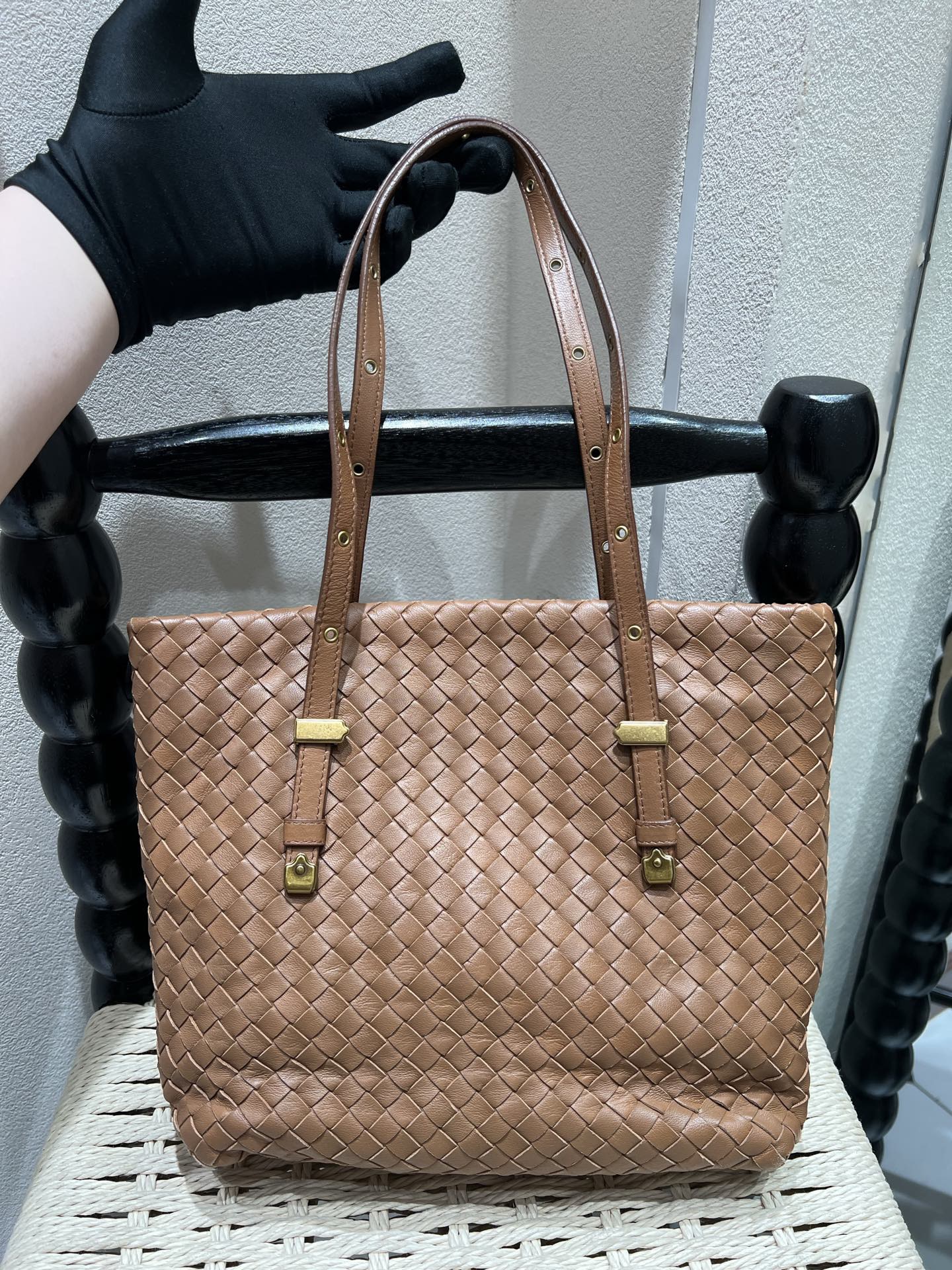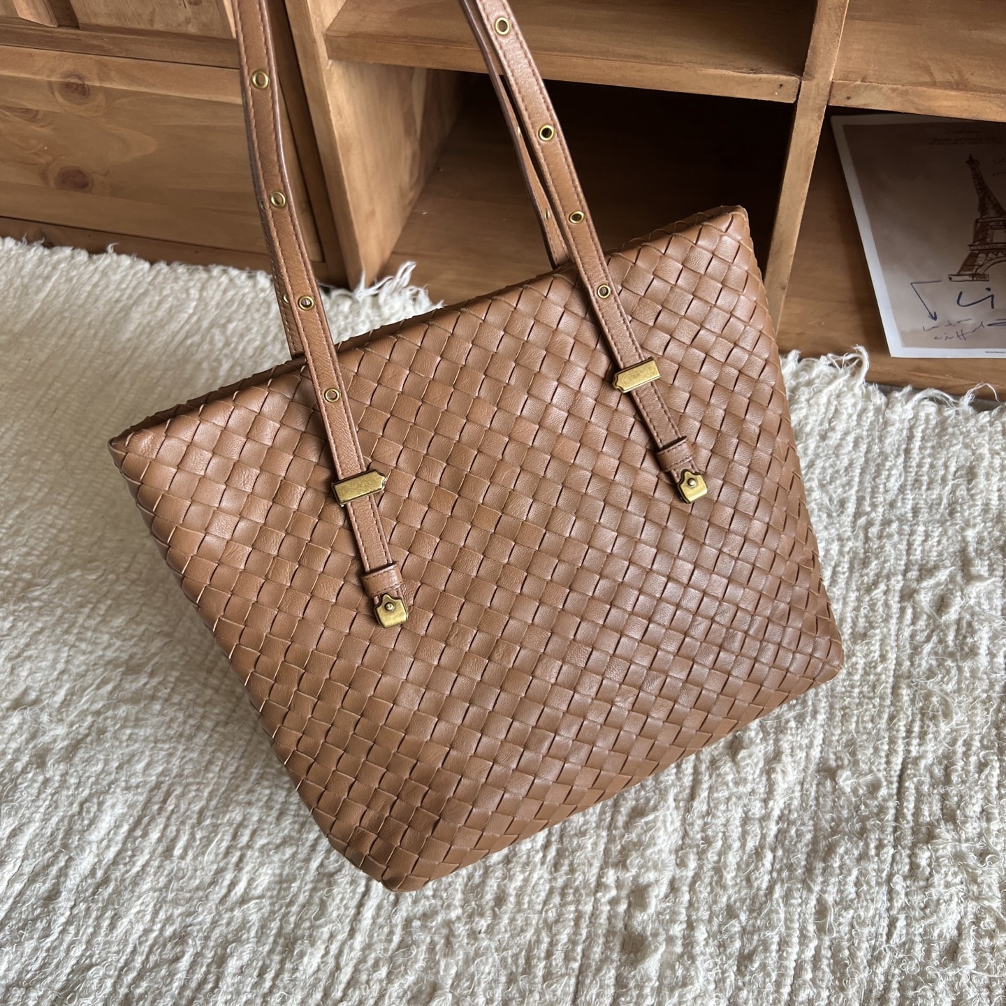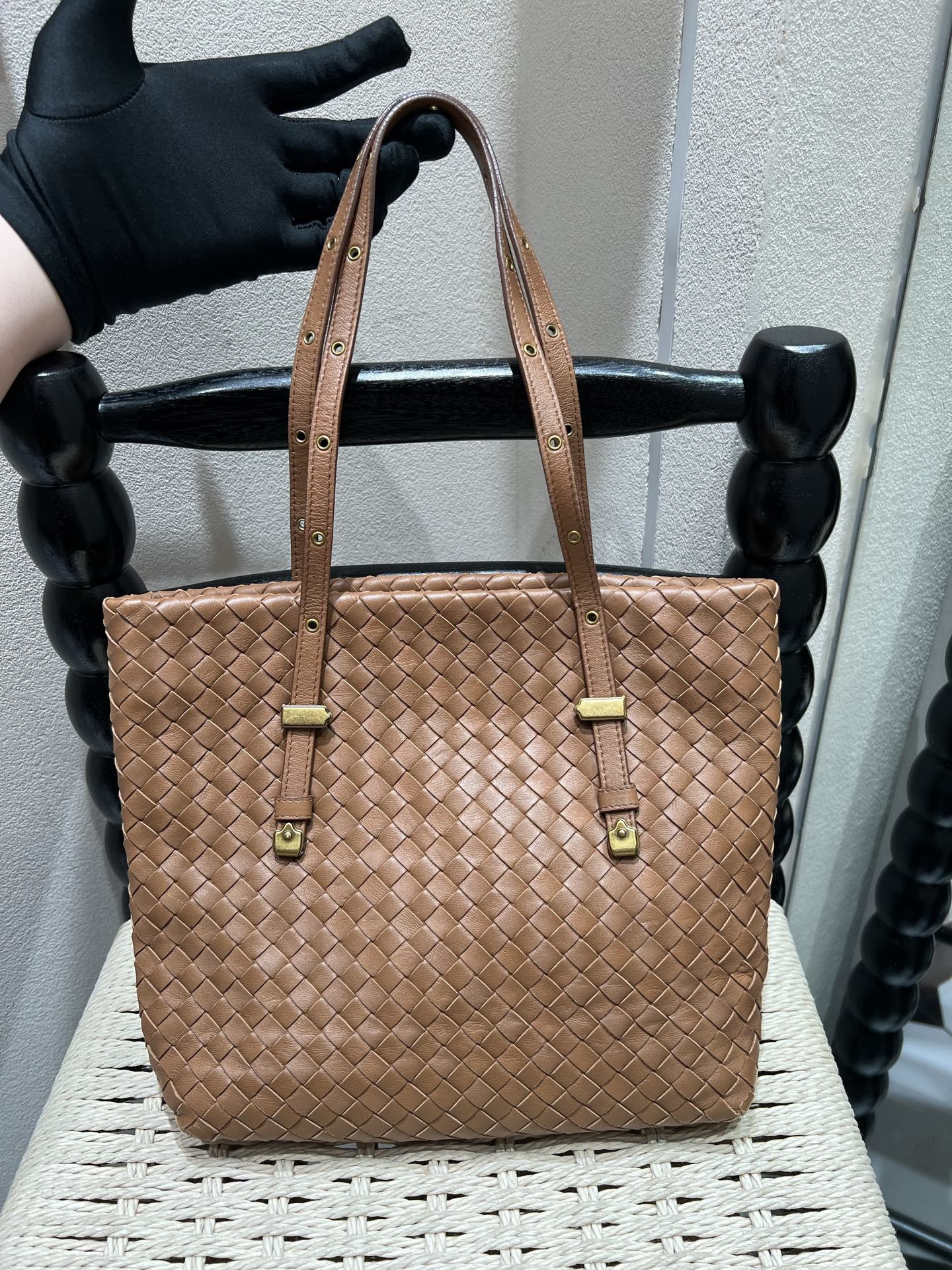 Bottega Veneta Brown Intreccio Woven Leather Tote Bag