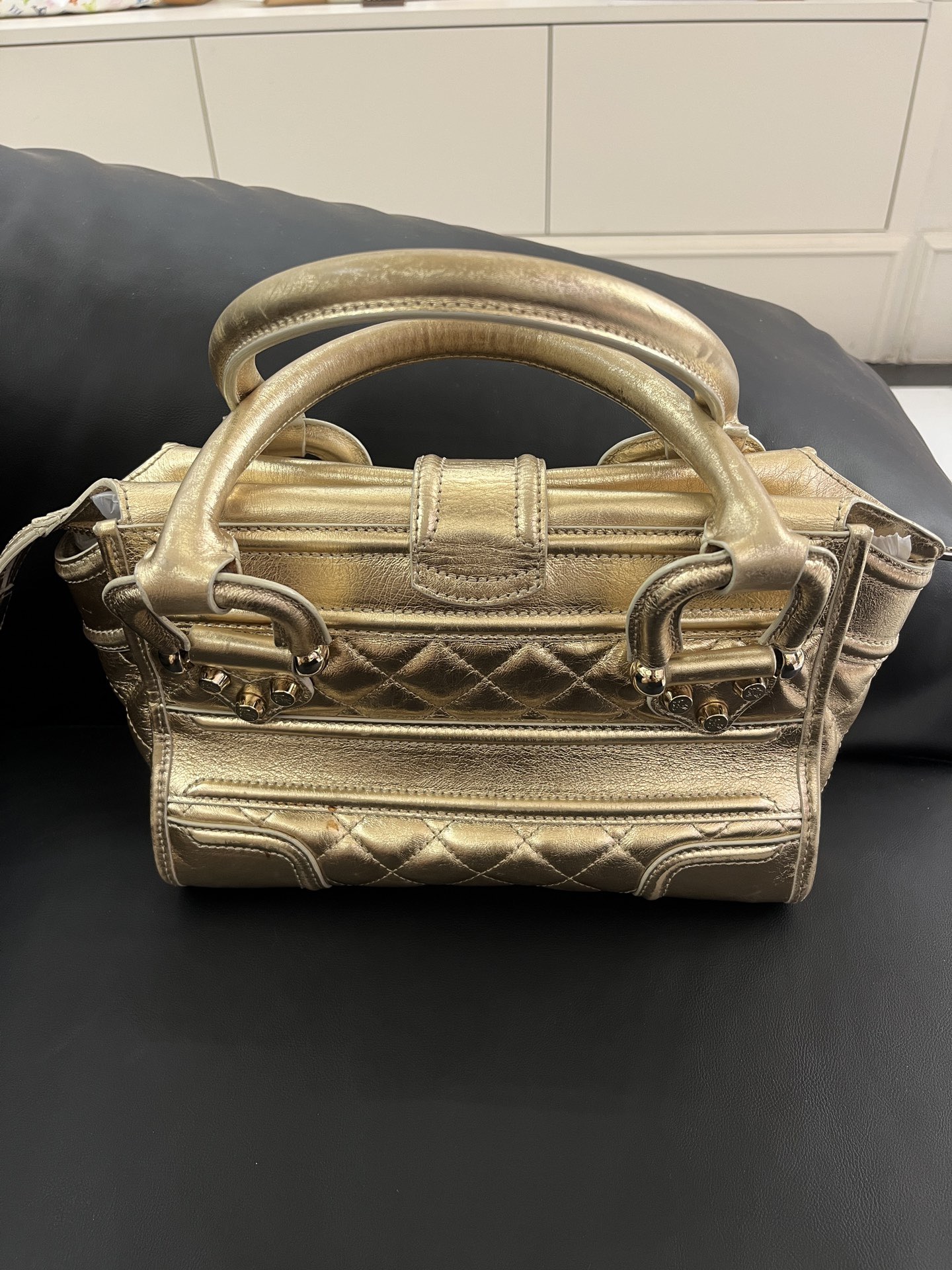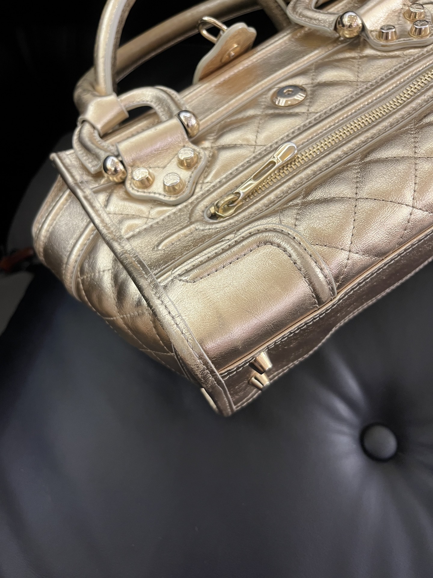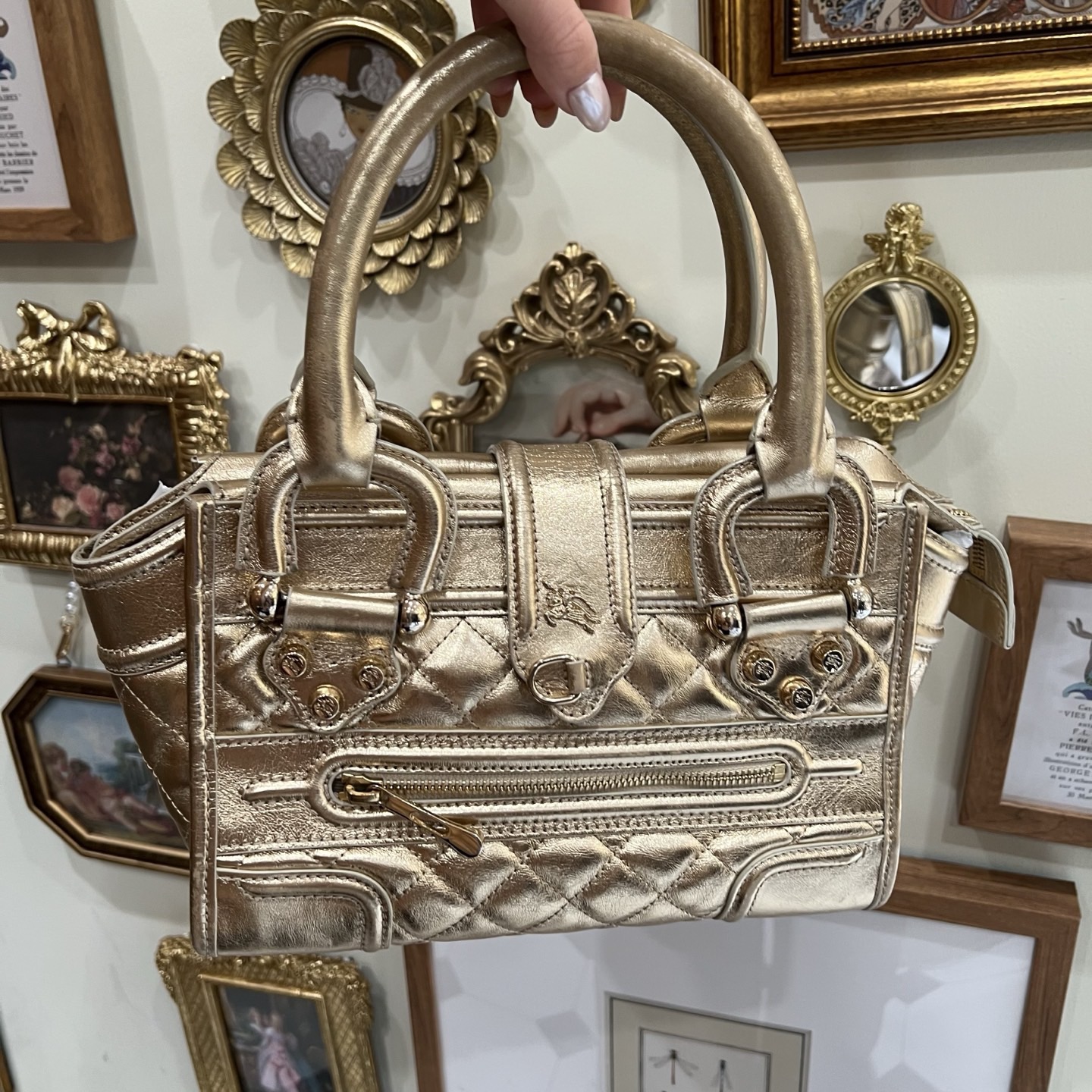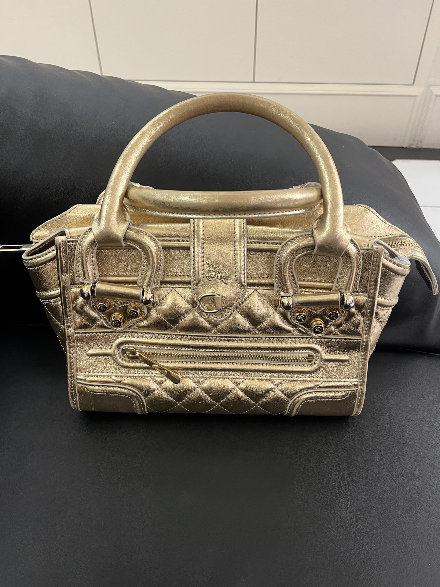 Burberry Vintage Gold Metallic Quilted Leather Top Handle Bag