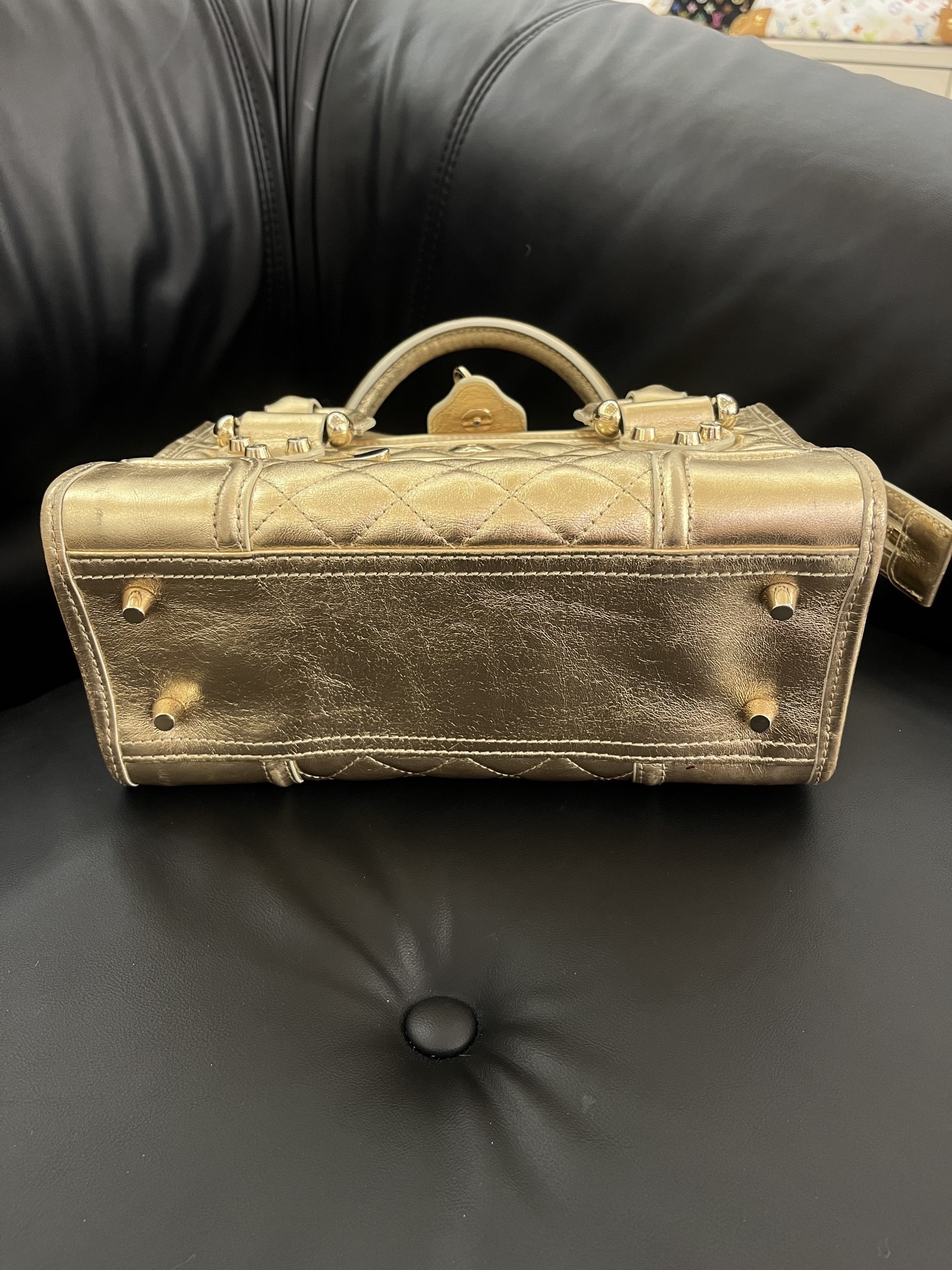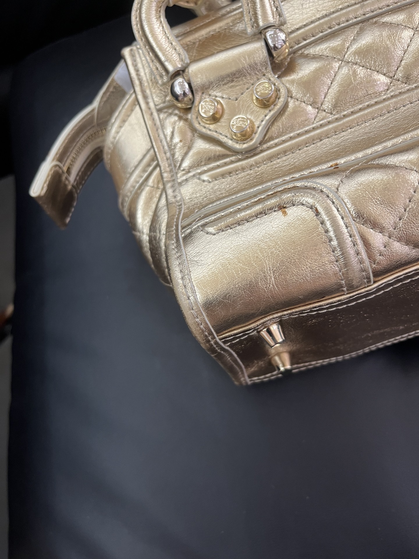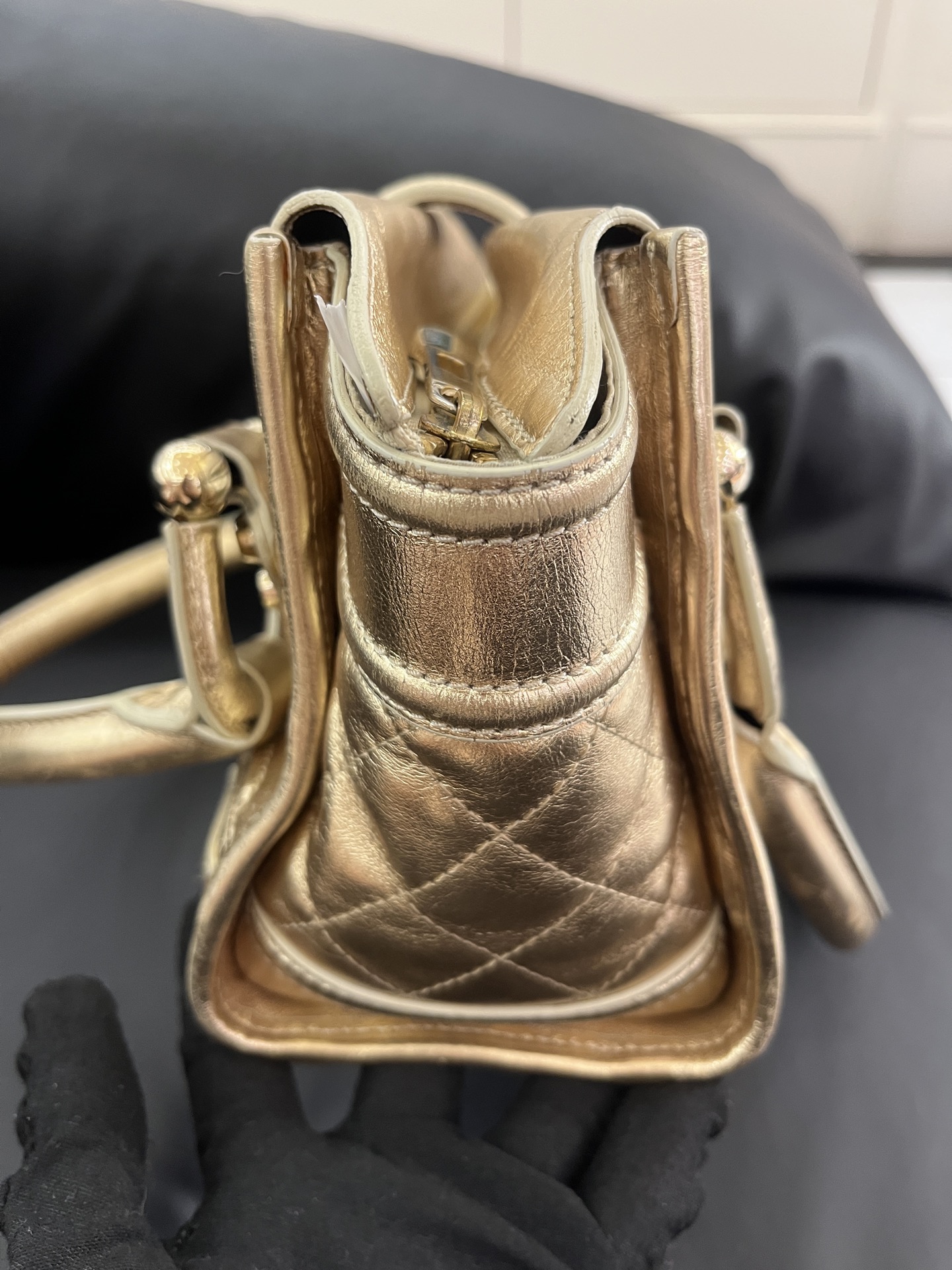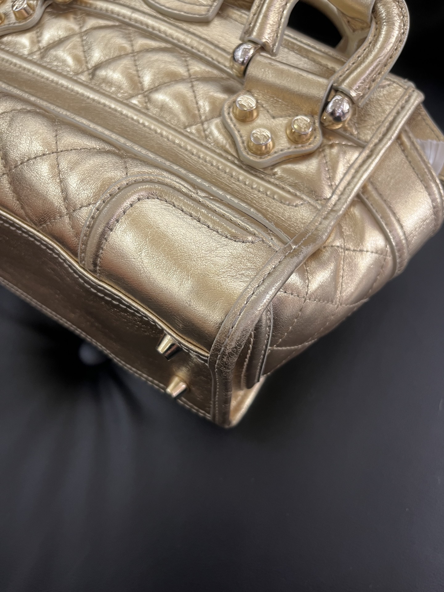 Burberry Vintage Gold Metallic Quilted Leather Top Handle Bag