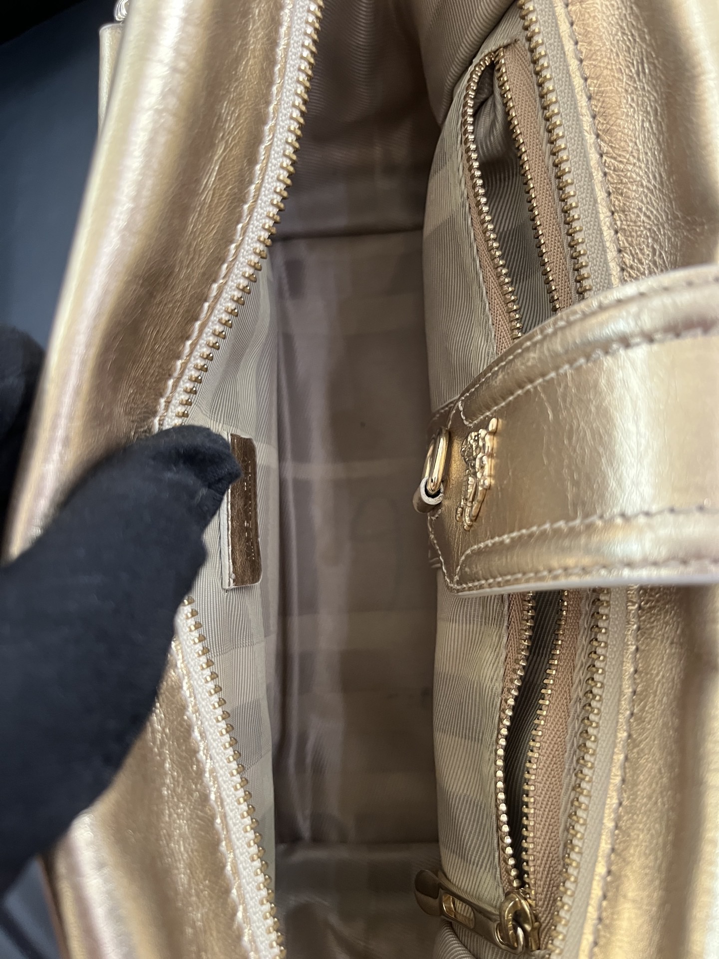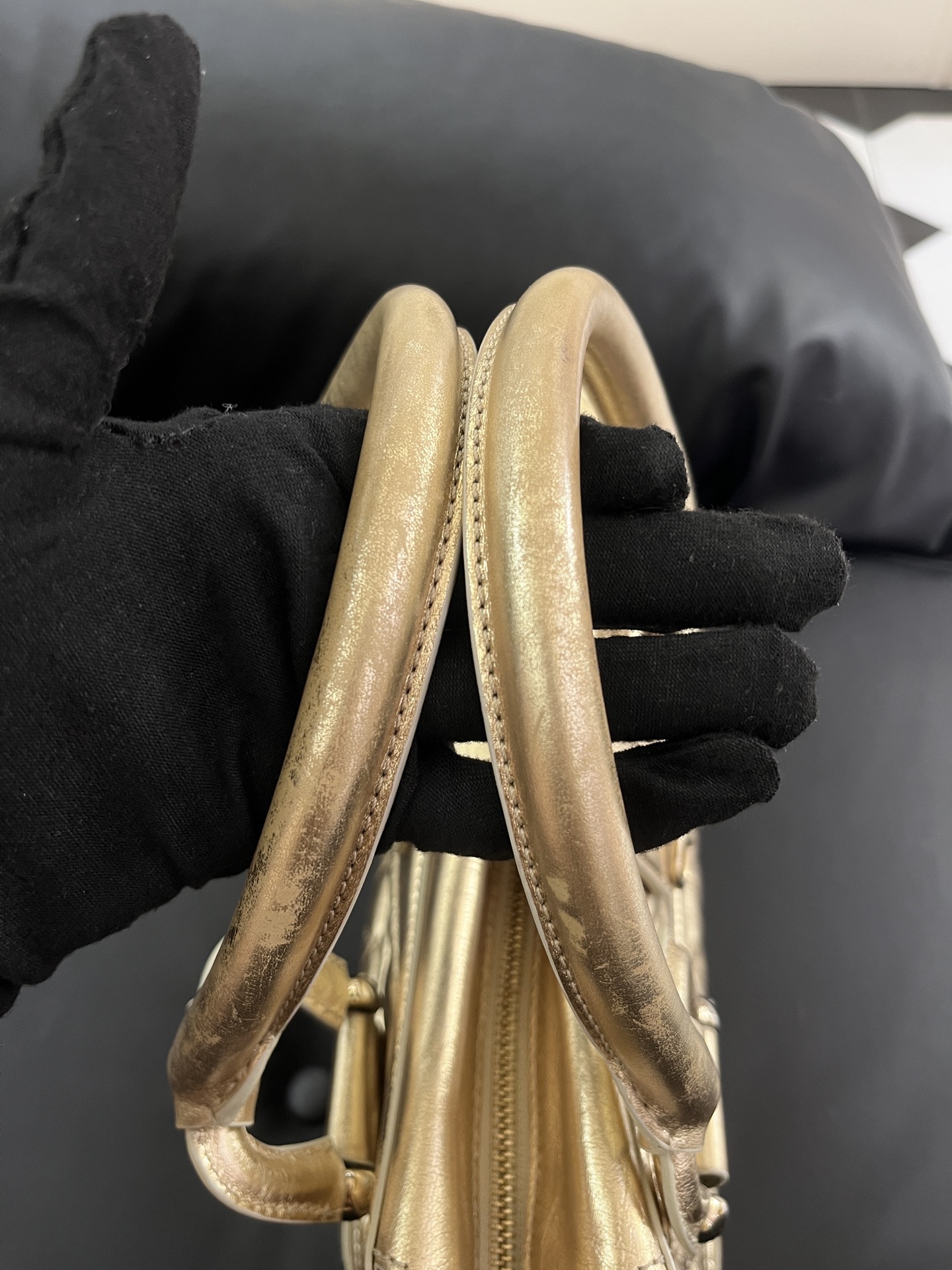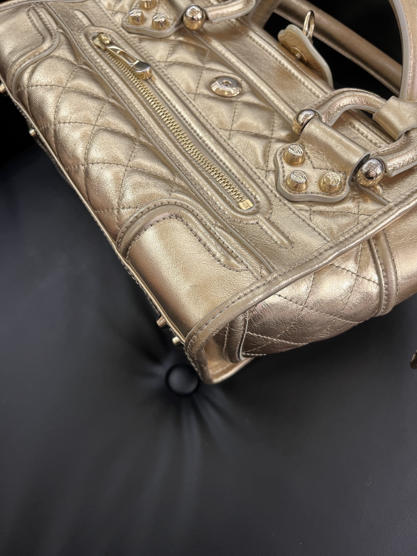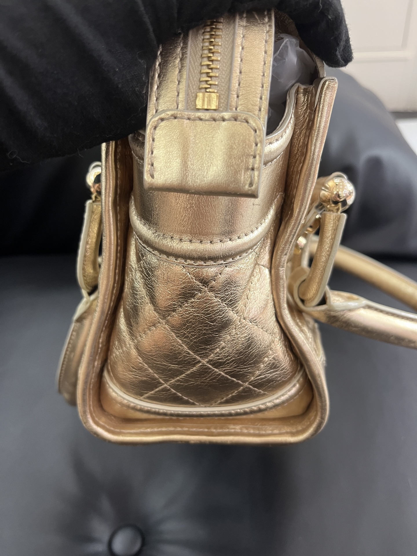 Burberry Vintage Gold Metallic Quilted Leather Top Handle Bag