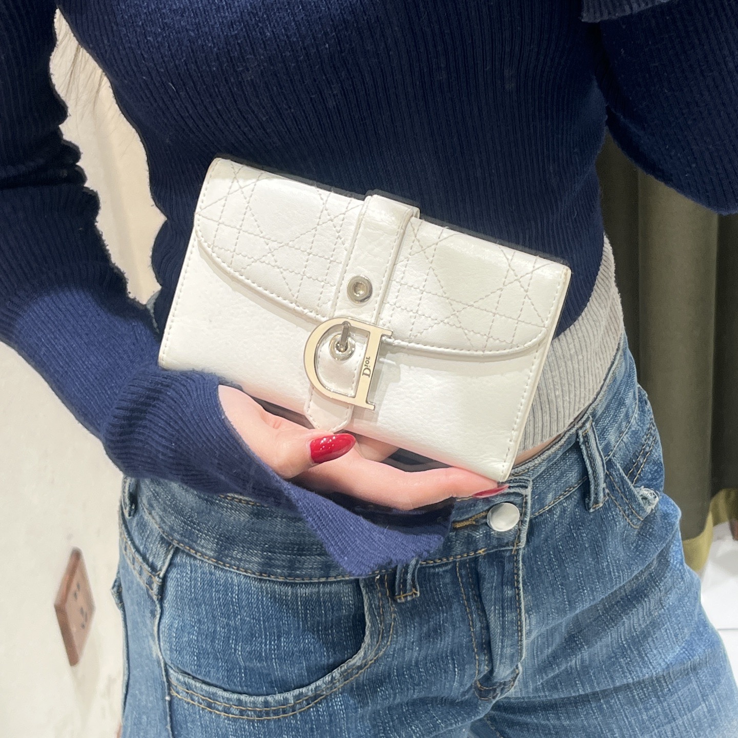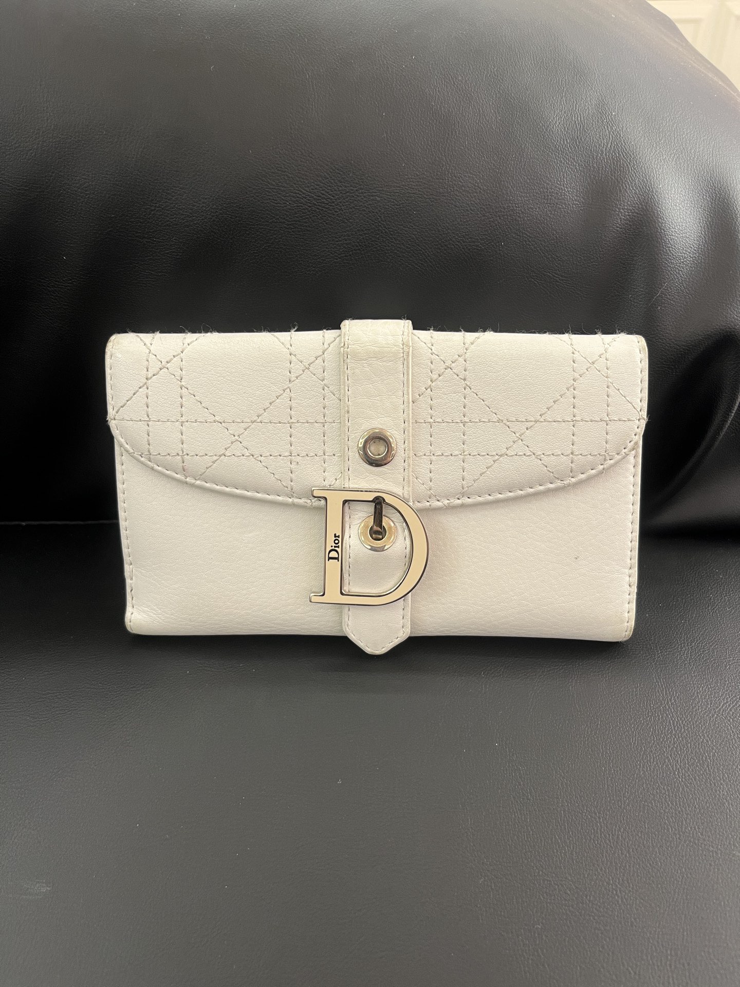 Christian Dior Vintage White Leather Cannage Trifold Wallet