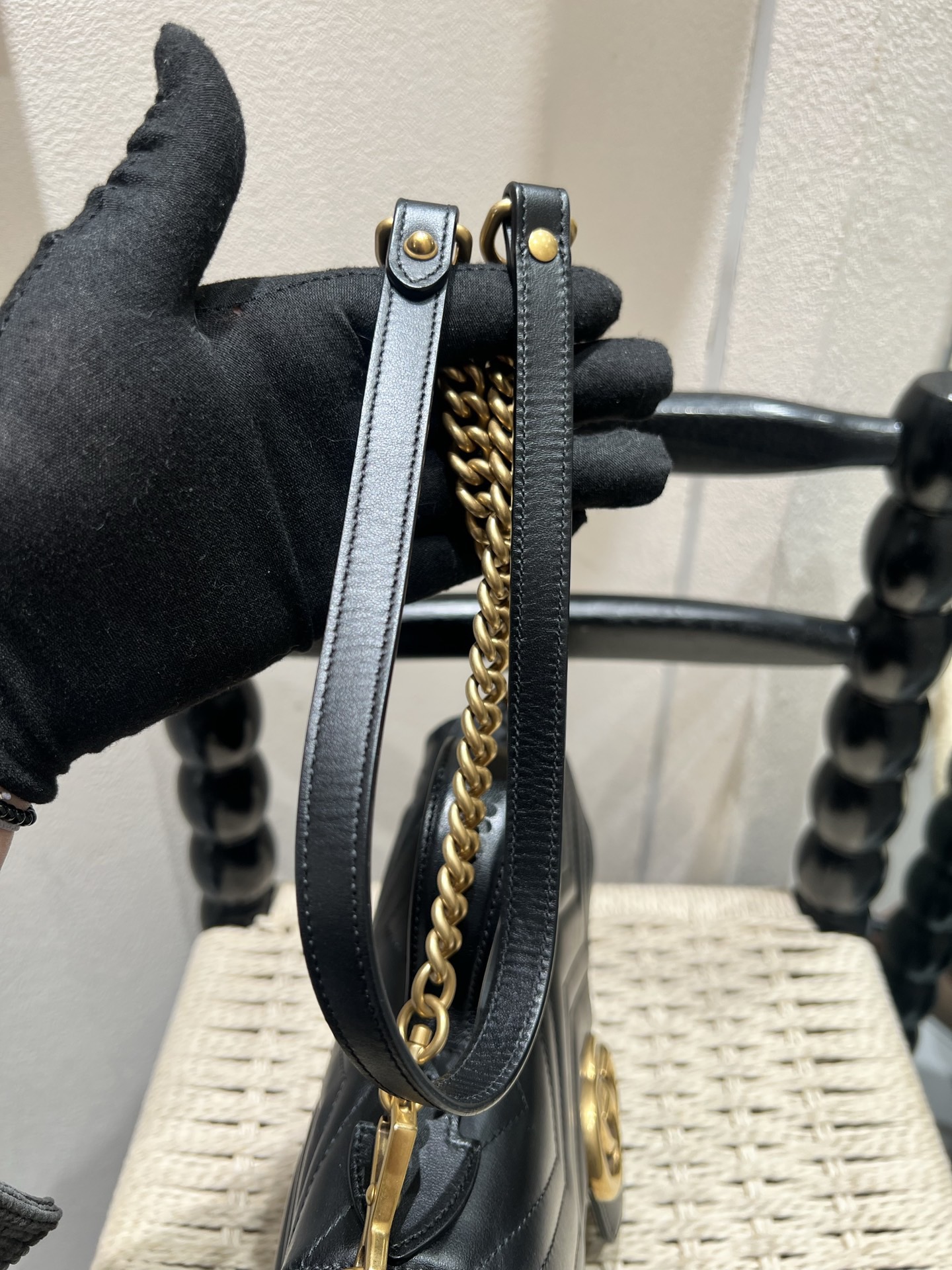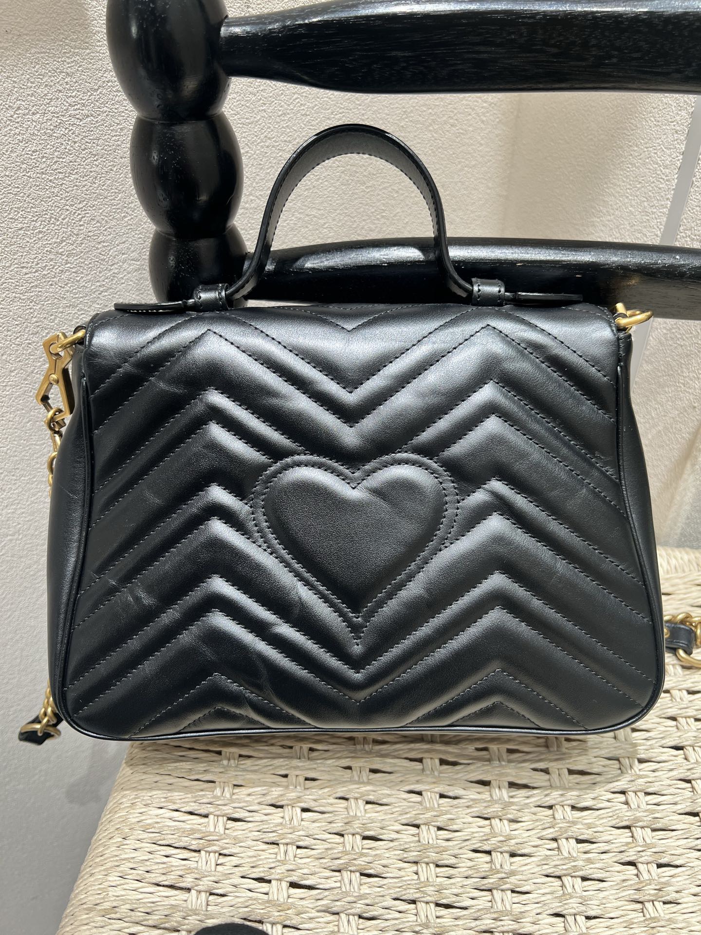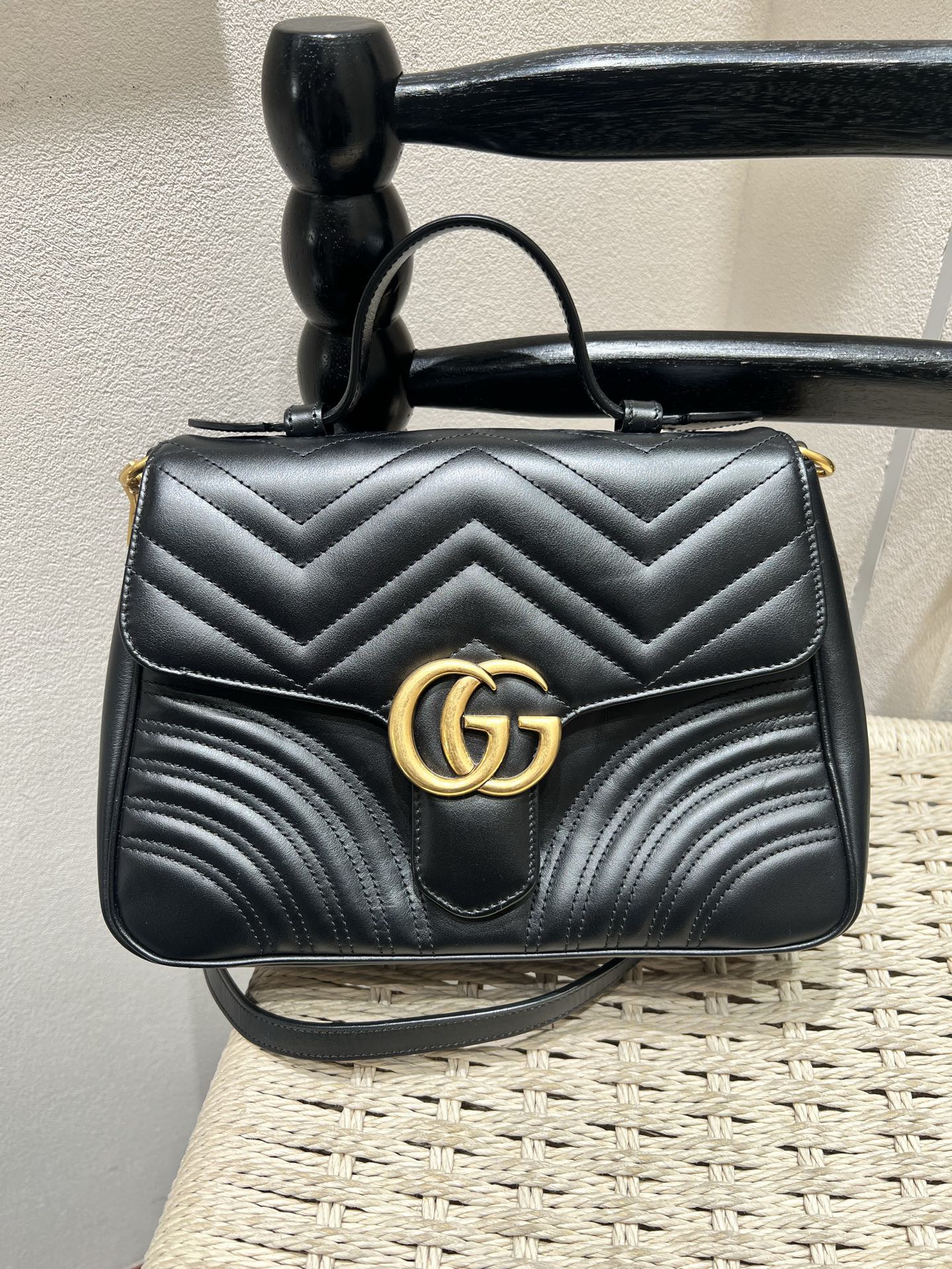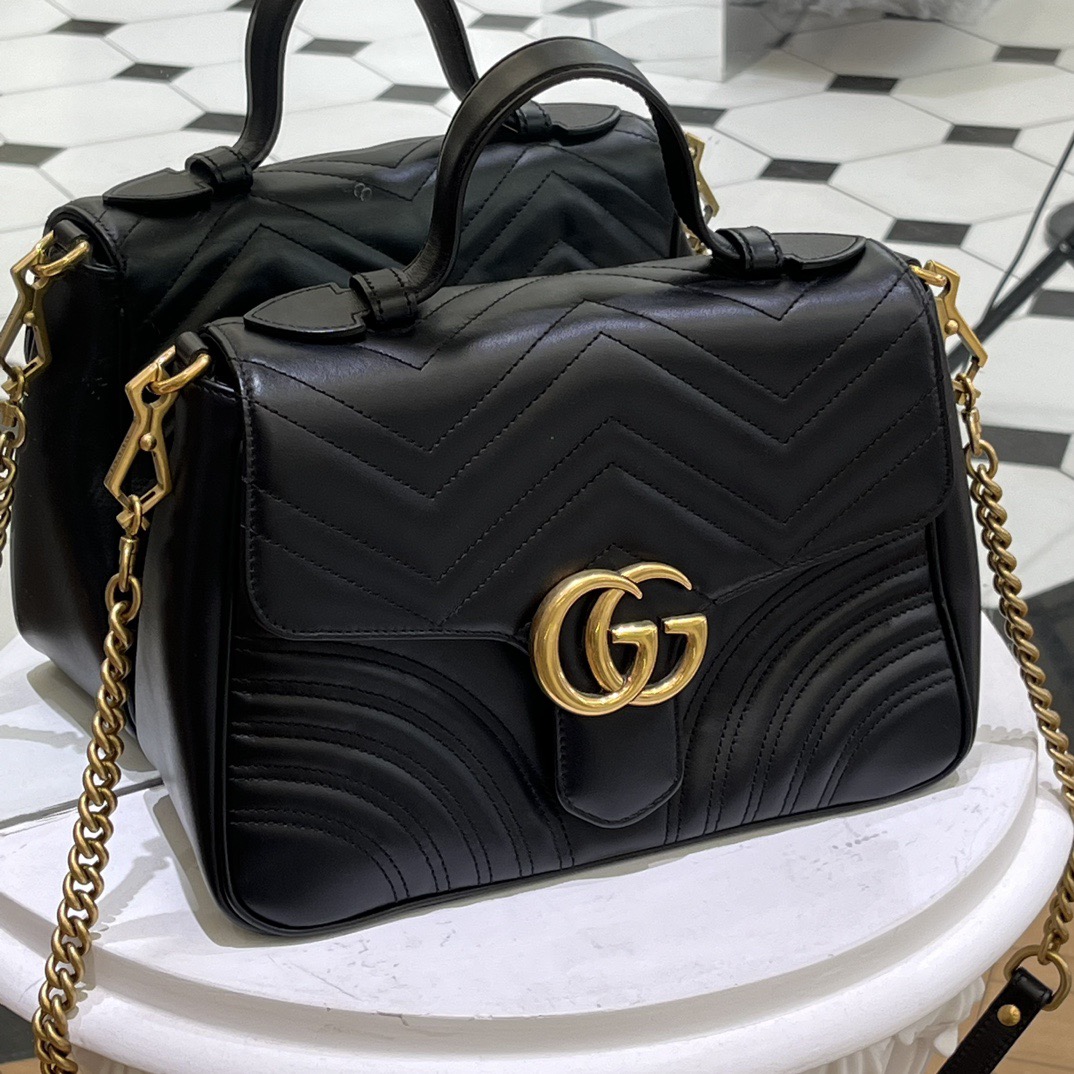 Gucci Marmont Black Leather Top Handle Shoulder Bag