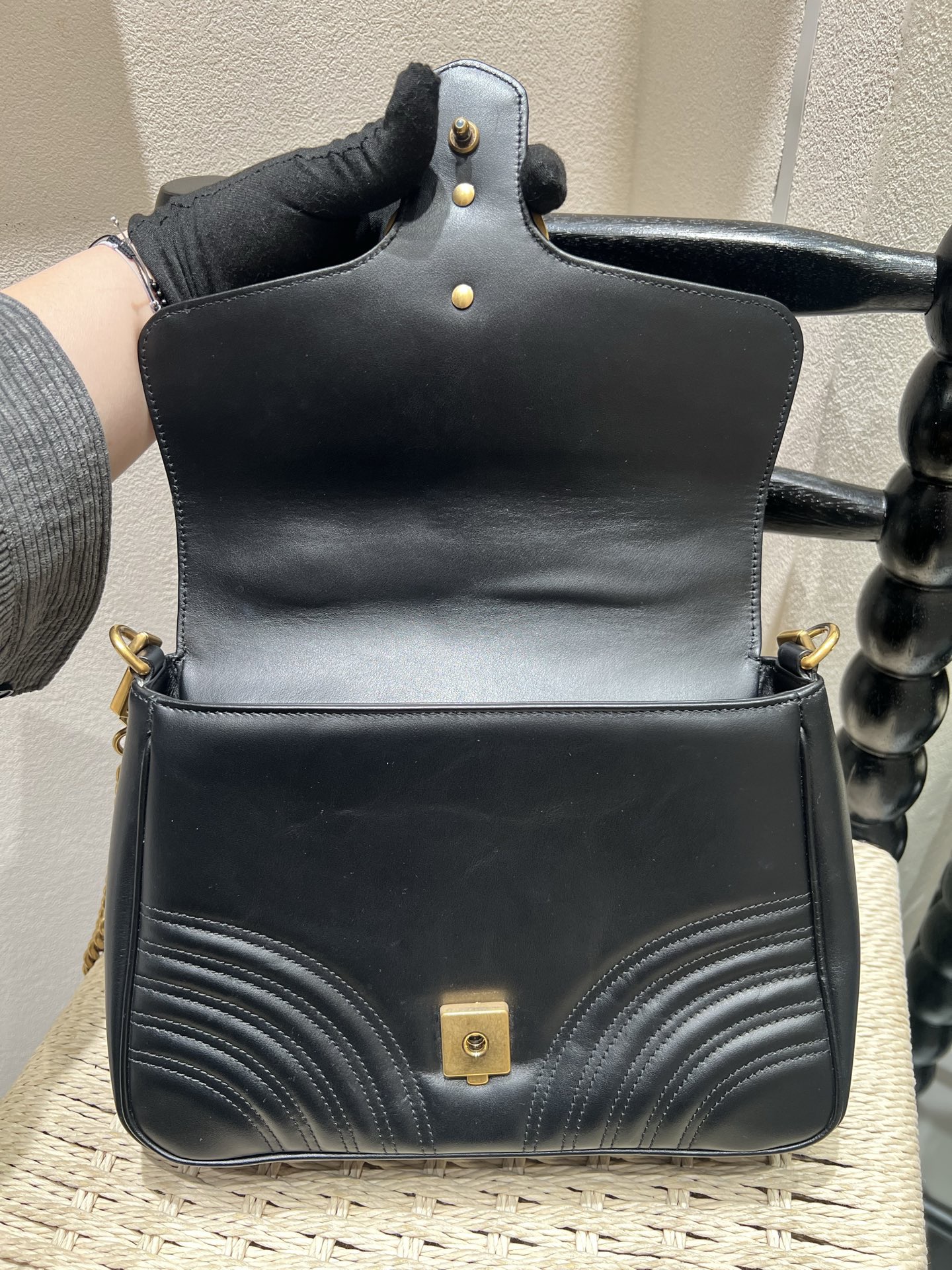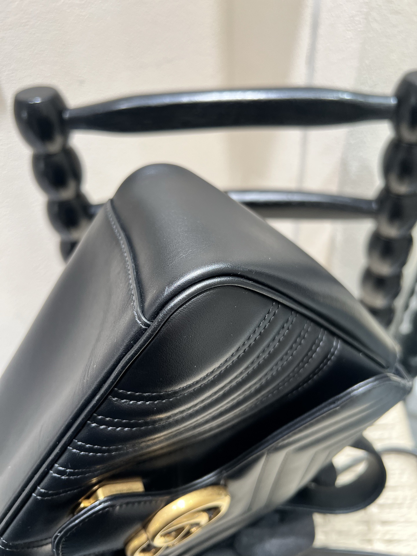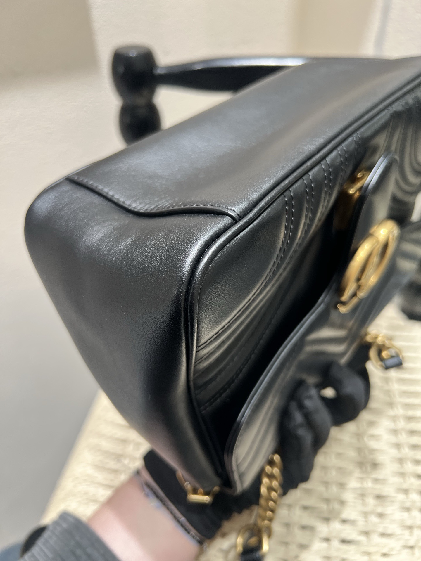 Gucci Marmont Black Leather Top Handle Shoulder Bag
