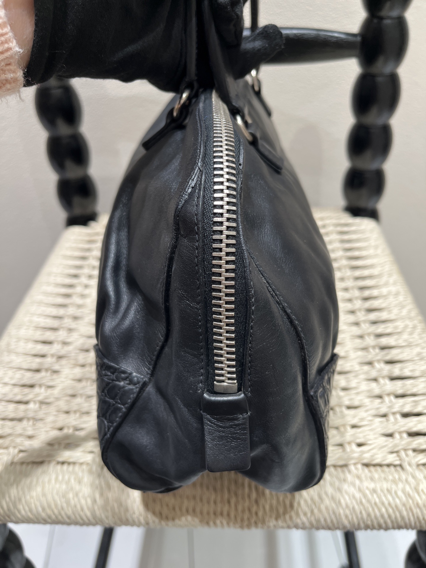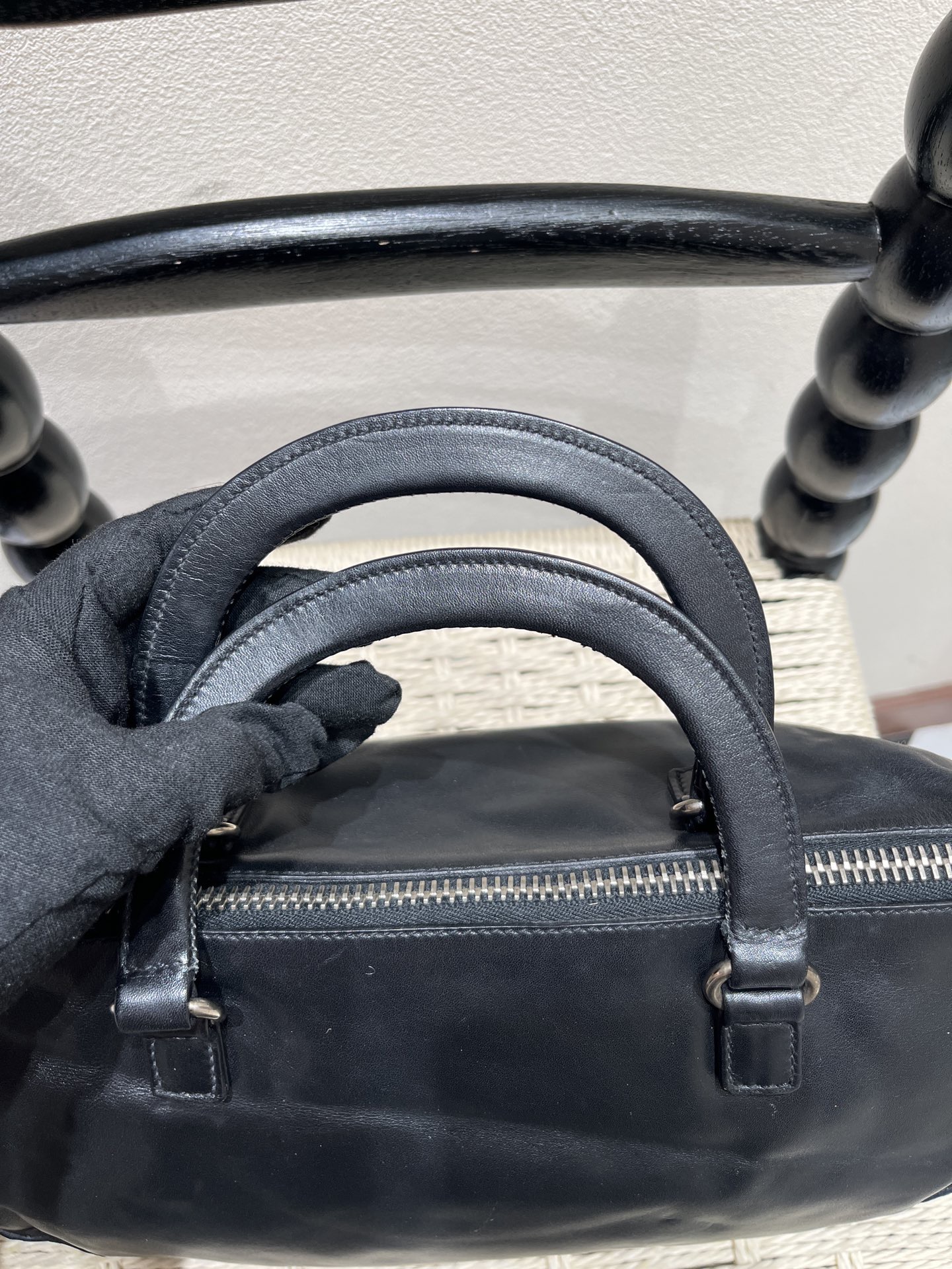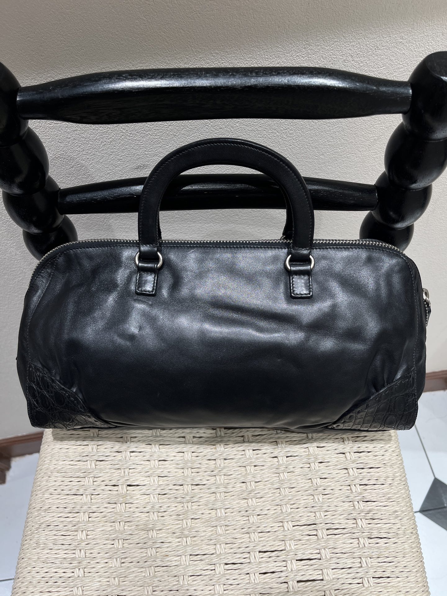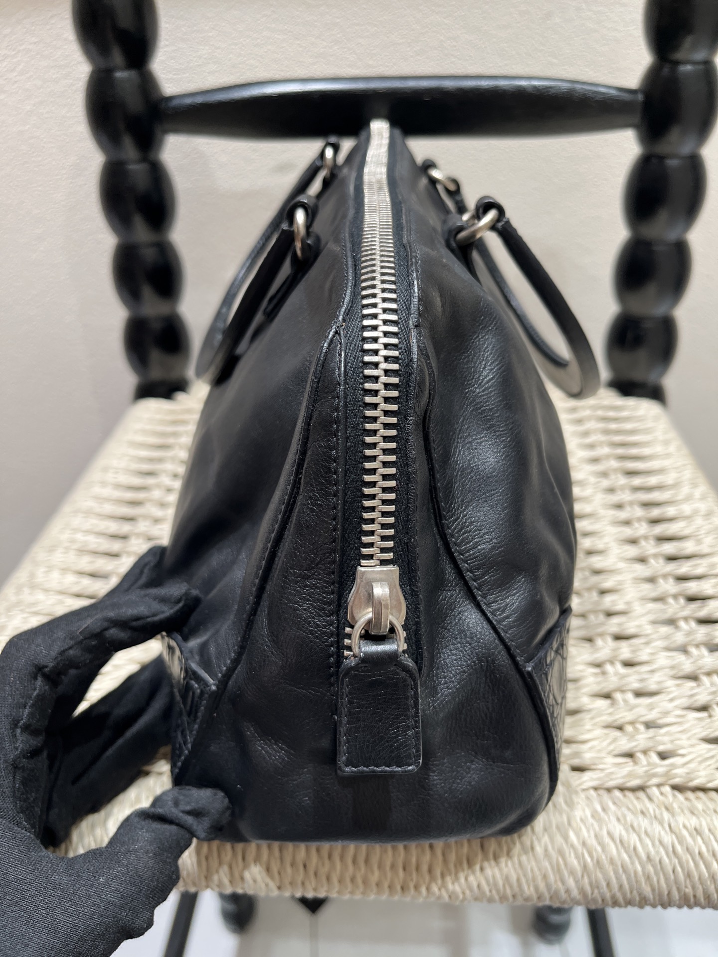 Prada Vintage Black Lambskin Kiss-Lock Frame Clutch Handbag