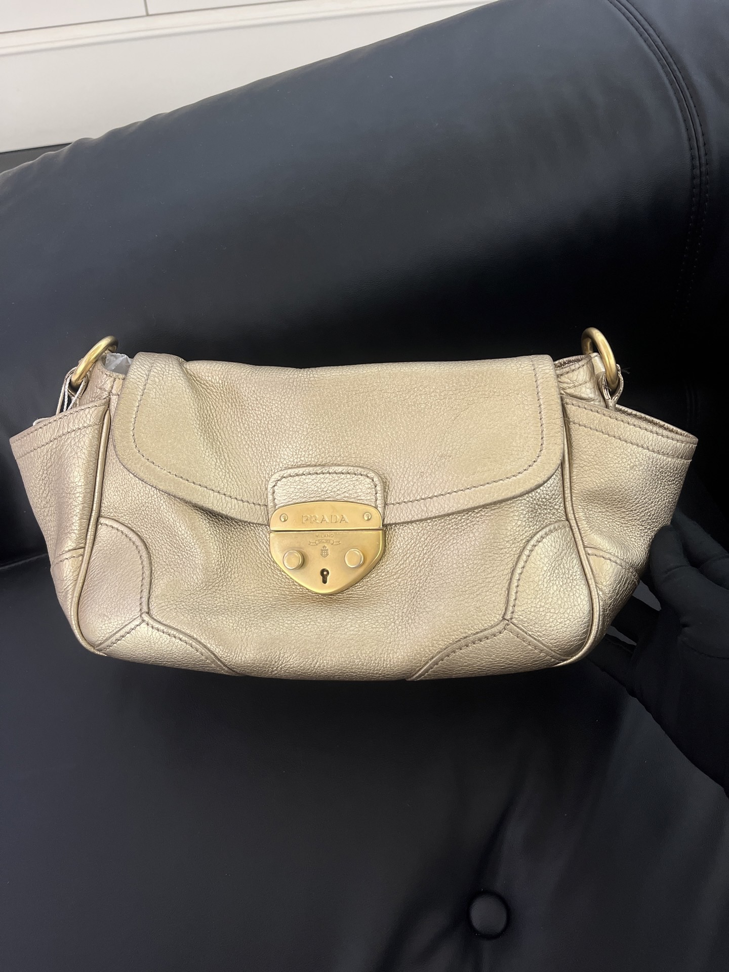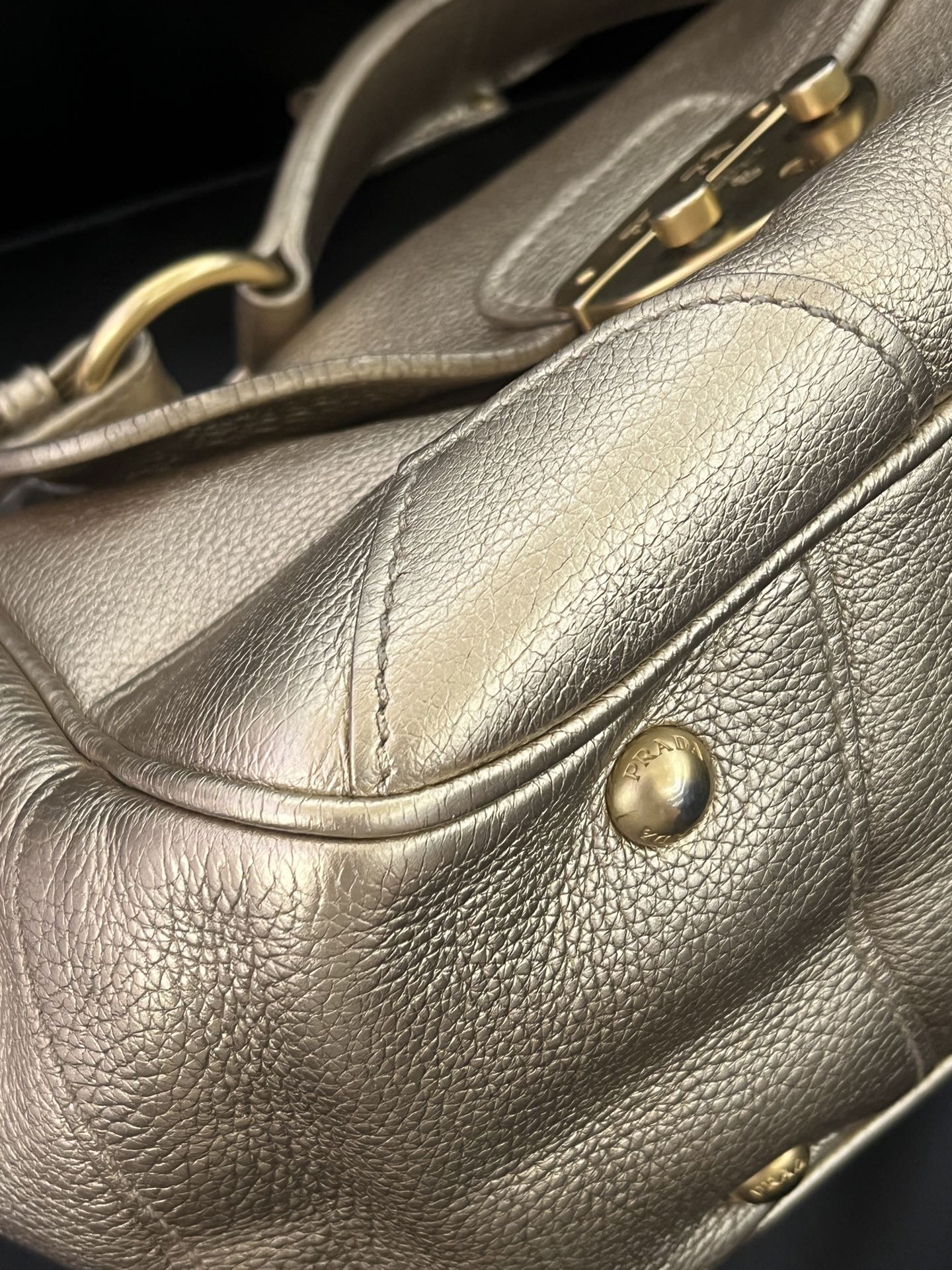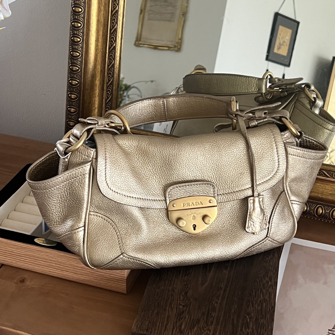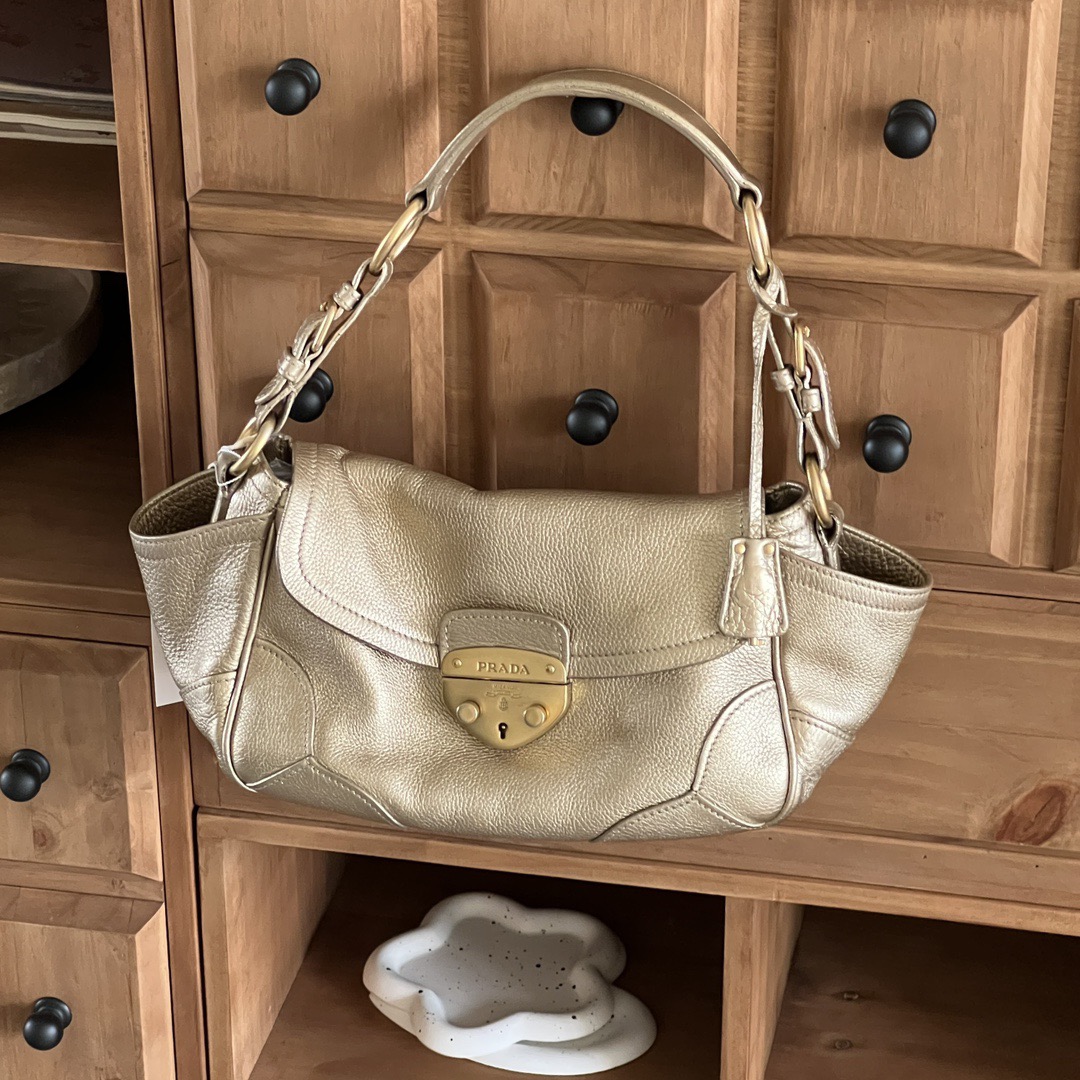 Prada Vintage Gold Leather Pig Nose Lock Hobo Bag