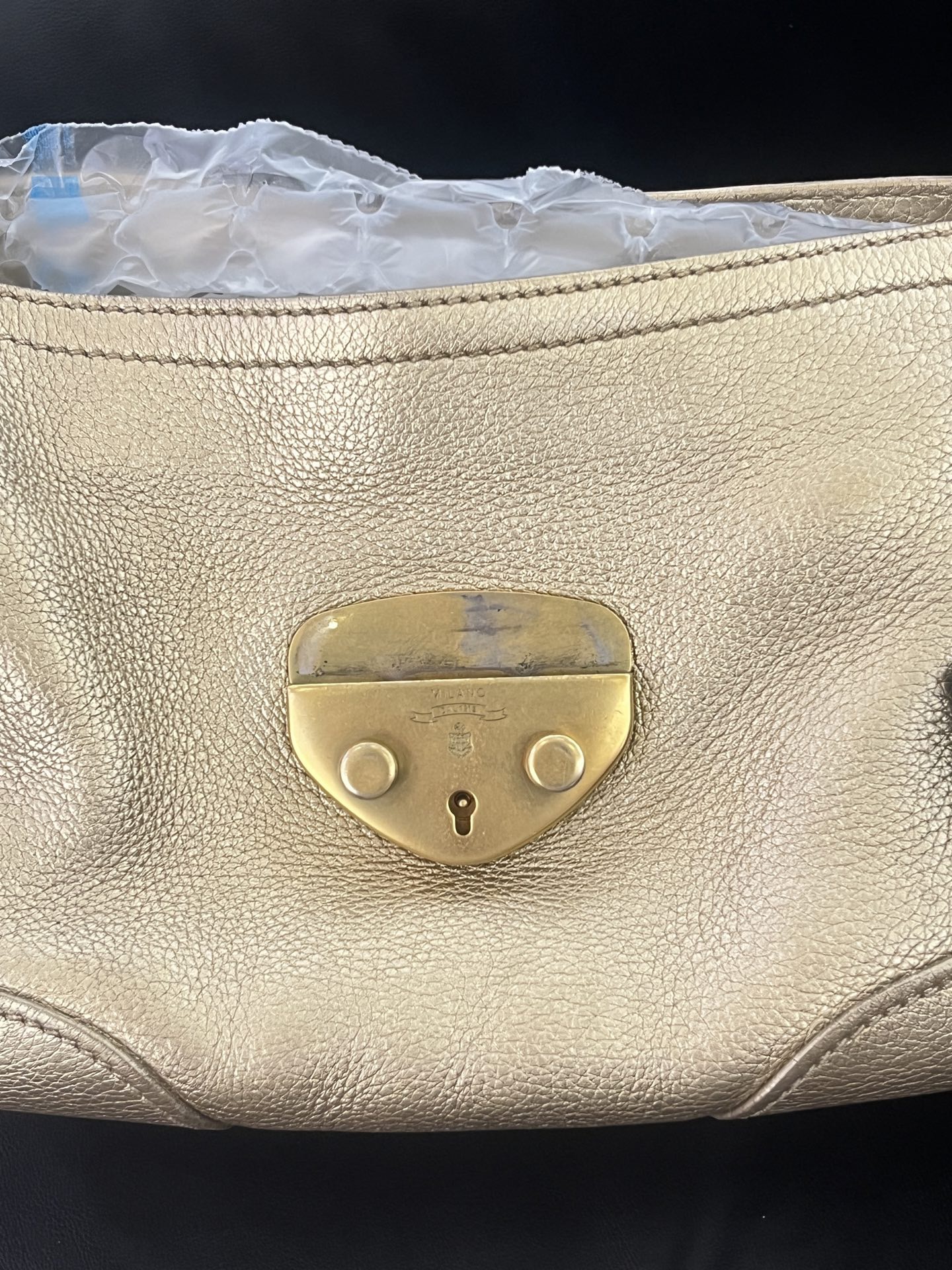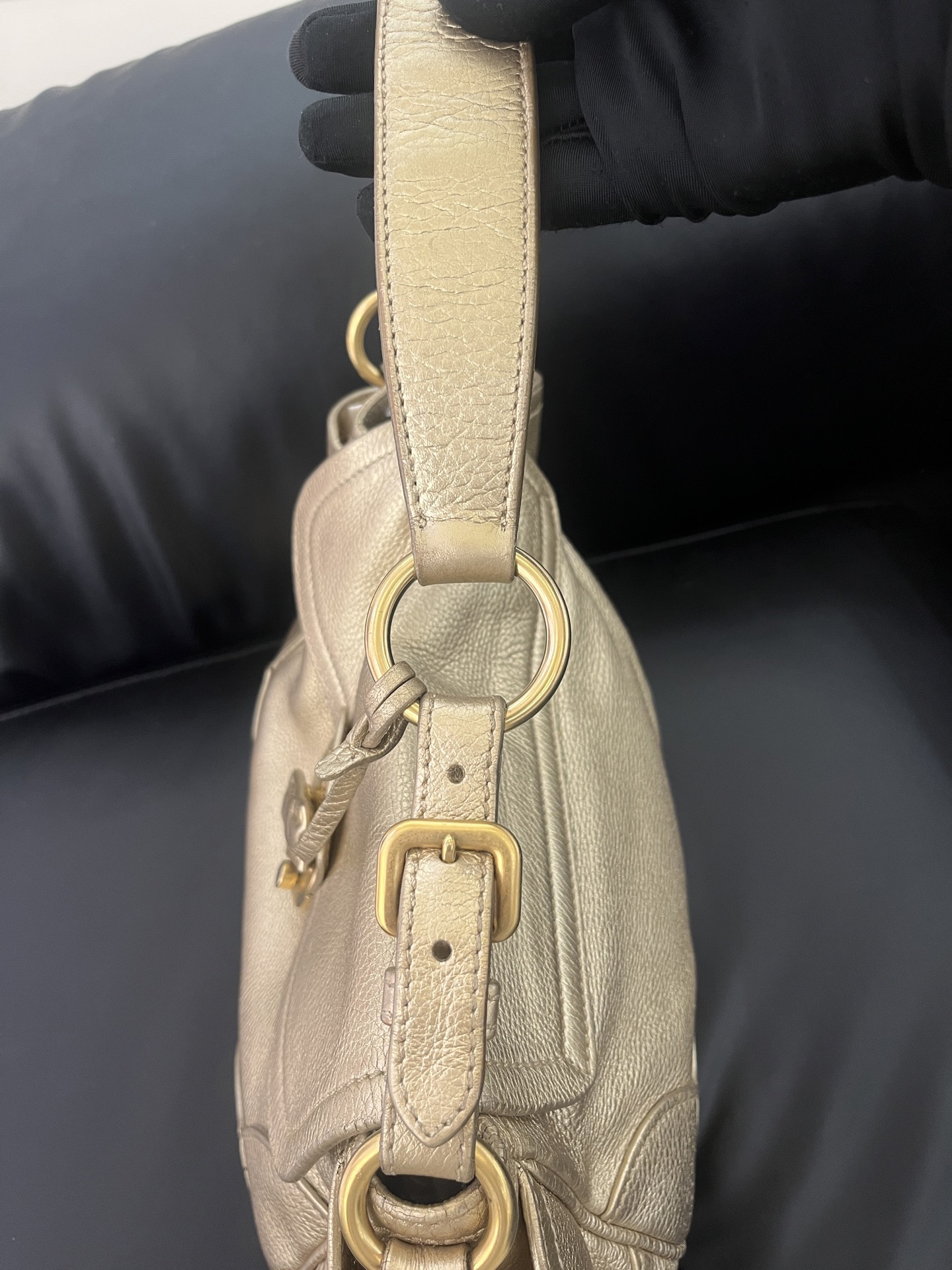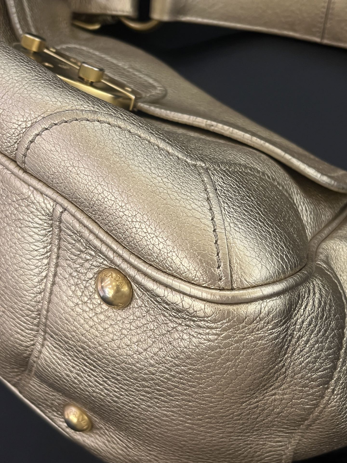Prada Vintage Gold Leather Pig Nose Lock Hobo Bag
