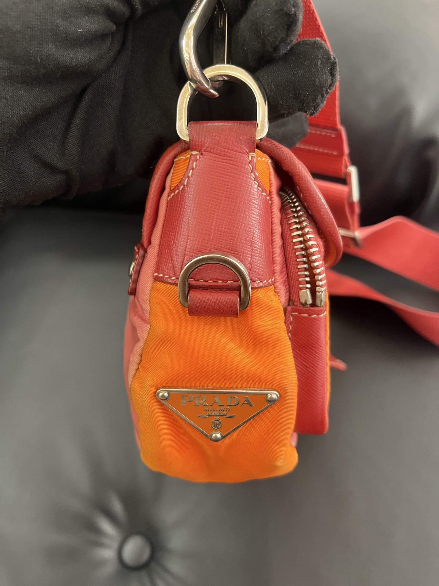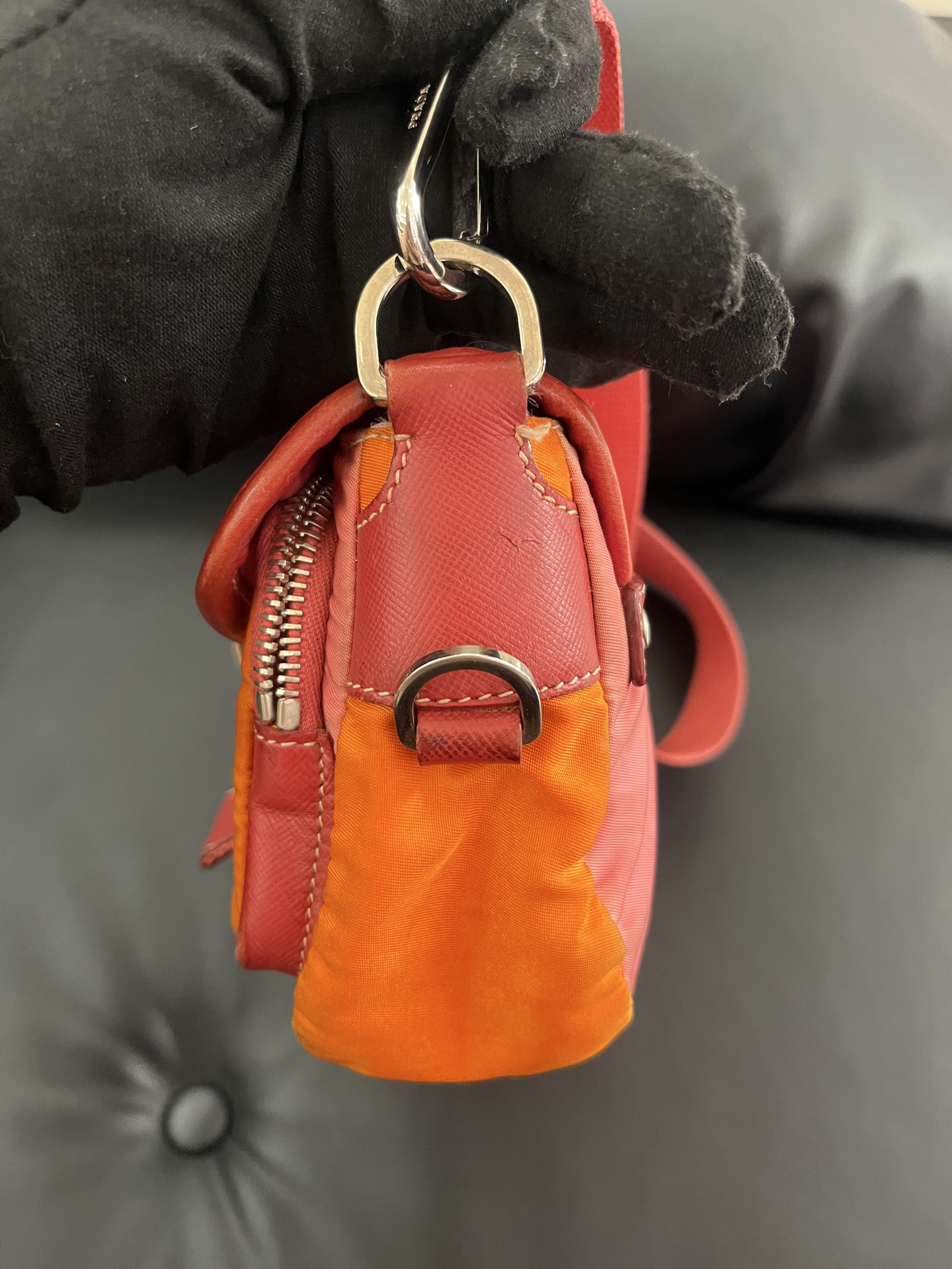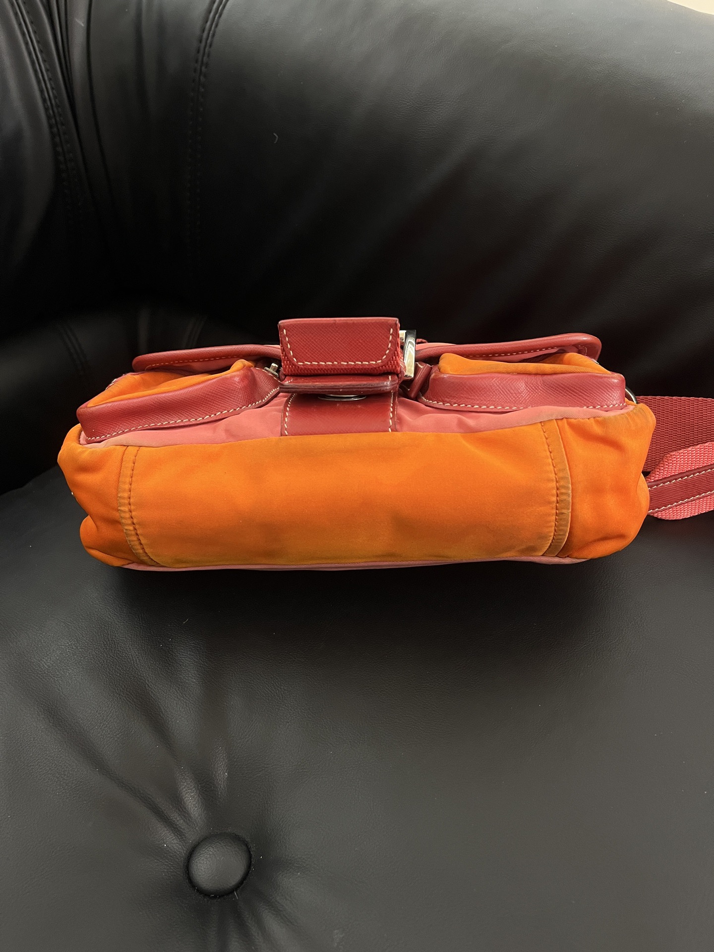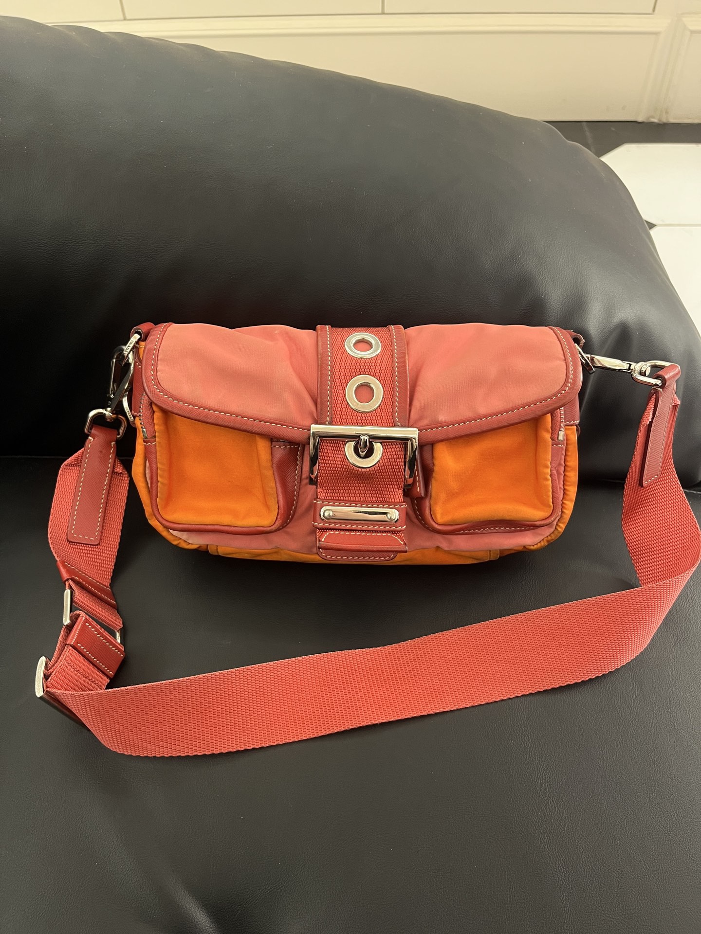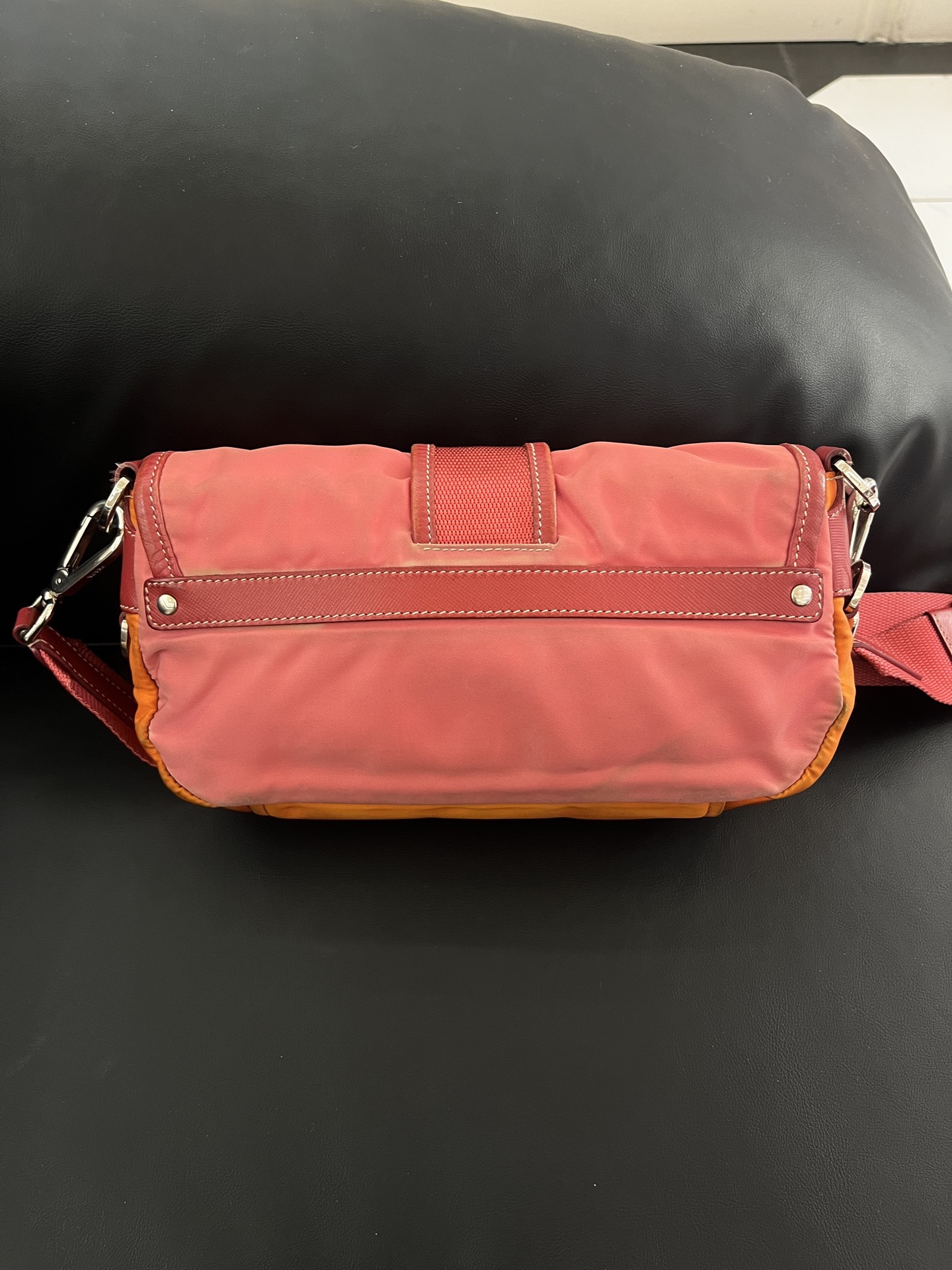 Prada Vintage Pink & Orange Nylon Flap Bag